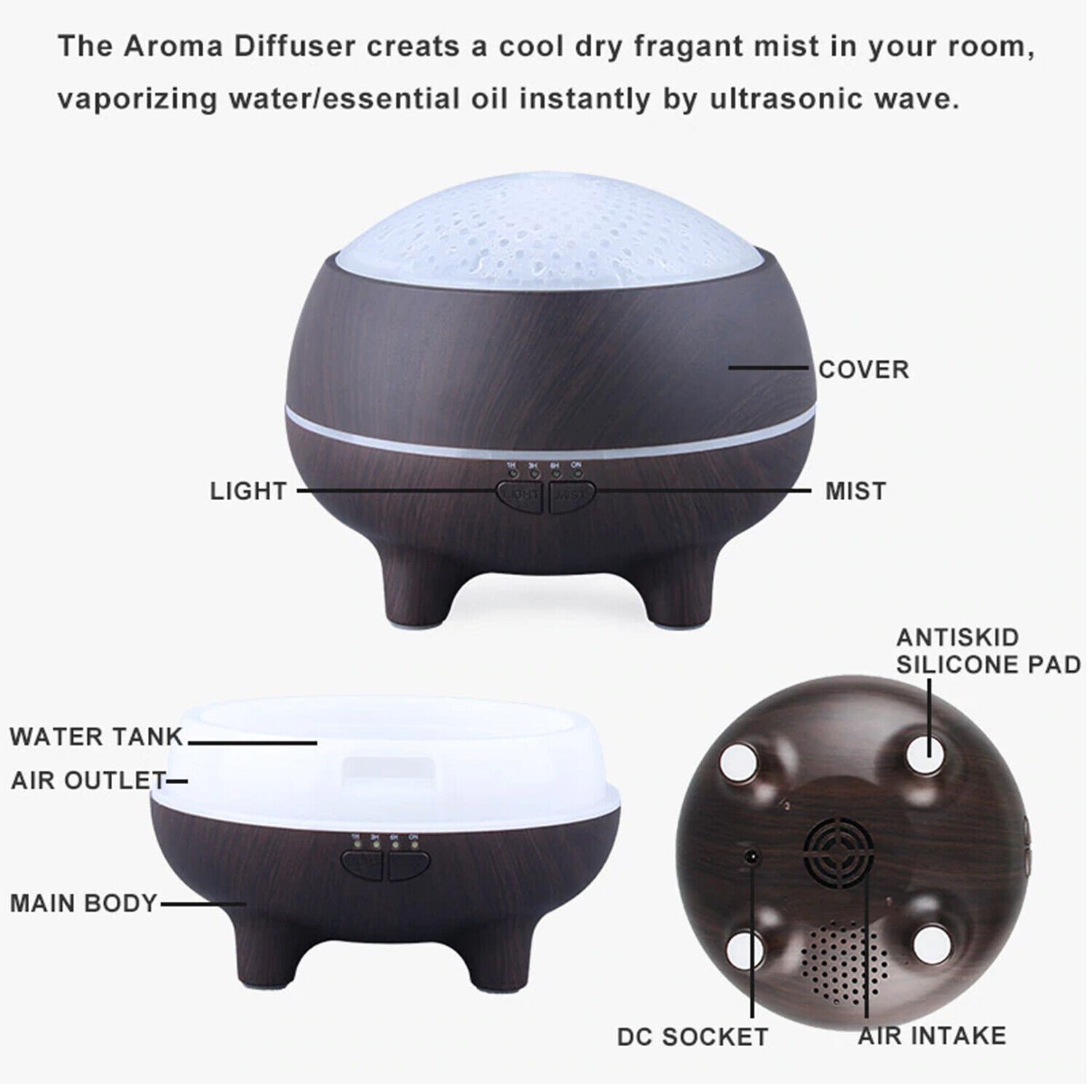 300Ml Portable Aroma Diffuser Humidifier Air Purifier Led Oil Essential Burner