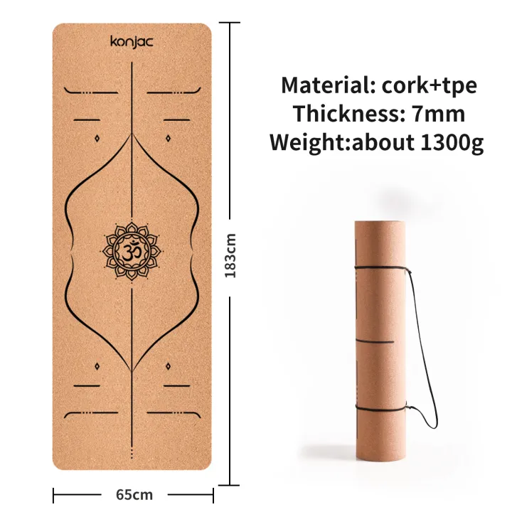 Cork Yoga Mat 183x65cm 7mm TPE Non Slip Natural Eco-Friendly Pro Mat Home Fitness Exercise with Carrying for Workout Yoga Pilates and Gymnastics Absorb Sweat Odorless