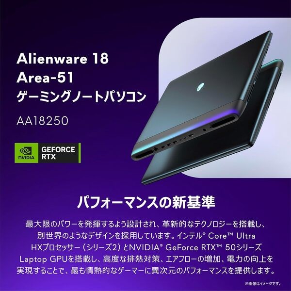 Dell ノートパソコン Alienware 18 Area-51 AA18250 18インチ Intel®Core™Ultra 9 プロセッサー 275HX RTX 5080 メモリ32GB SSD1TB Windows 11 リキッド ティール 翌営業日対応オンサイト出張修理サービス1年 NAA108-FN