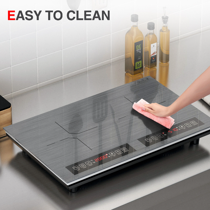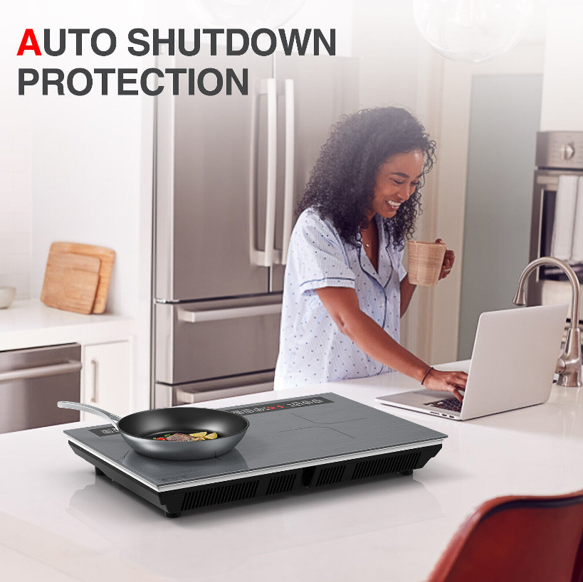 • ??DUAL HEATING ZONES?The double induction cooktop features two independent heating areas and independent LED display. Each burner is 2000W which can cook 2 dishes quickly at the same time. The electric cooktop uses 110-120 Volts of electricity?standard in all North American homes.
