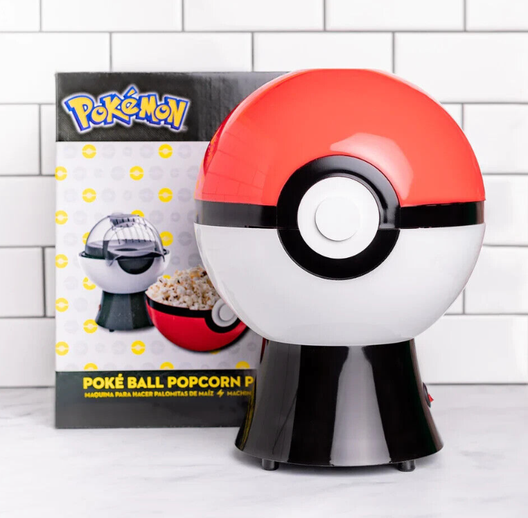 All Pokémon fans will love our Pokéball Popcorn Maker. Our counter-sized version is all about good taste! The top of the Poké Ball turns the popcorn maker top into a bowl as you make fresh popcorn.