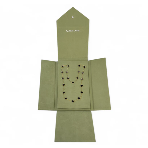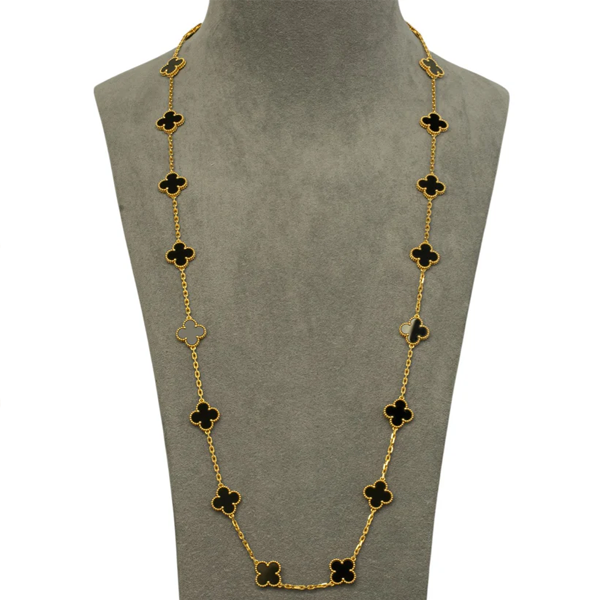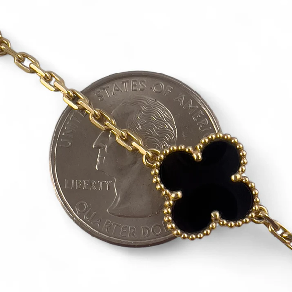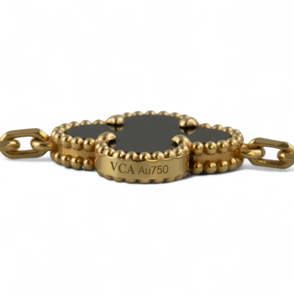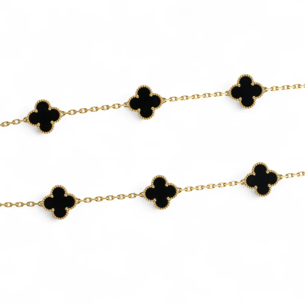 Van Cleef Arpels Onyx 20 Motif Vintage Alhambra 18k Gold Necklace POUCH & CERT SKU: 500996