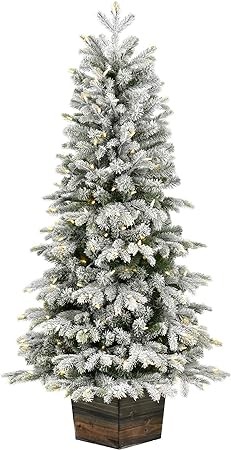 Vickerman 5' Frosted Wendell Slim Potted Pine Artificial Christmas Tree, Warm White Durable Glowing LED Light - Artificial Wendell Christmas Tree - Seasonal Indoor Home Decor