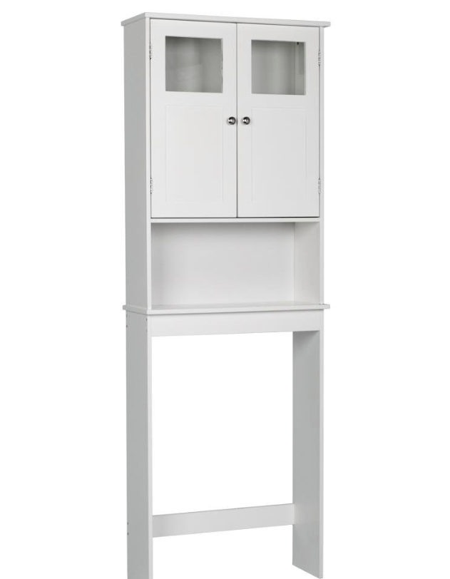 Introductions: This is a simple and modern style wall-mounted standing bathroom cabinet. Adopting high quality and hard MDF sheet, it is waterproof and moisture-proof. Double-door and three-layer design can help you classify your items better. You can put a variety of toiletries, cosmetics, and other sundries. In addition, the middle board in the double door can be movable and can be adjusted up and down according to your wishes. The space between below two feet is special to reserve for closes tool, which saves the floor area of the bathroom greatly and provides a perfect design plan for your bathroom. Specifications: Brand: FCH Material: MDF Color: White Chrome handle Dimensions: (23.23 x 8.66 x 66.93)" / (59 x 22 x 170)cm (L x W x H) Door's Interior Overall Dimensions: (21.46 x 7.09 x 22.44)" / (54.5 x 18 x 57)cm (L x W x H) In-between Layer Dimensions: (21.46 x 8.07 x 9.84)" / (54.5 x 20.5 x 25)cm (L x W x H) Size Between Legs: (21.46 x 8.07 x 30.31)" / (54.5 x 20.5 x 77)cm (L x W x H) Door Dimensions: (10.63 x 22.44)" / (27 x 57)cm (L x W ) Weight: 32.63 lbs / 14.8kg